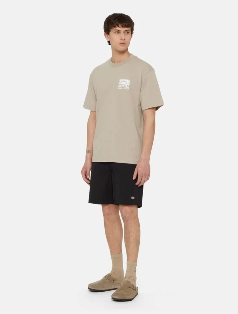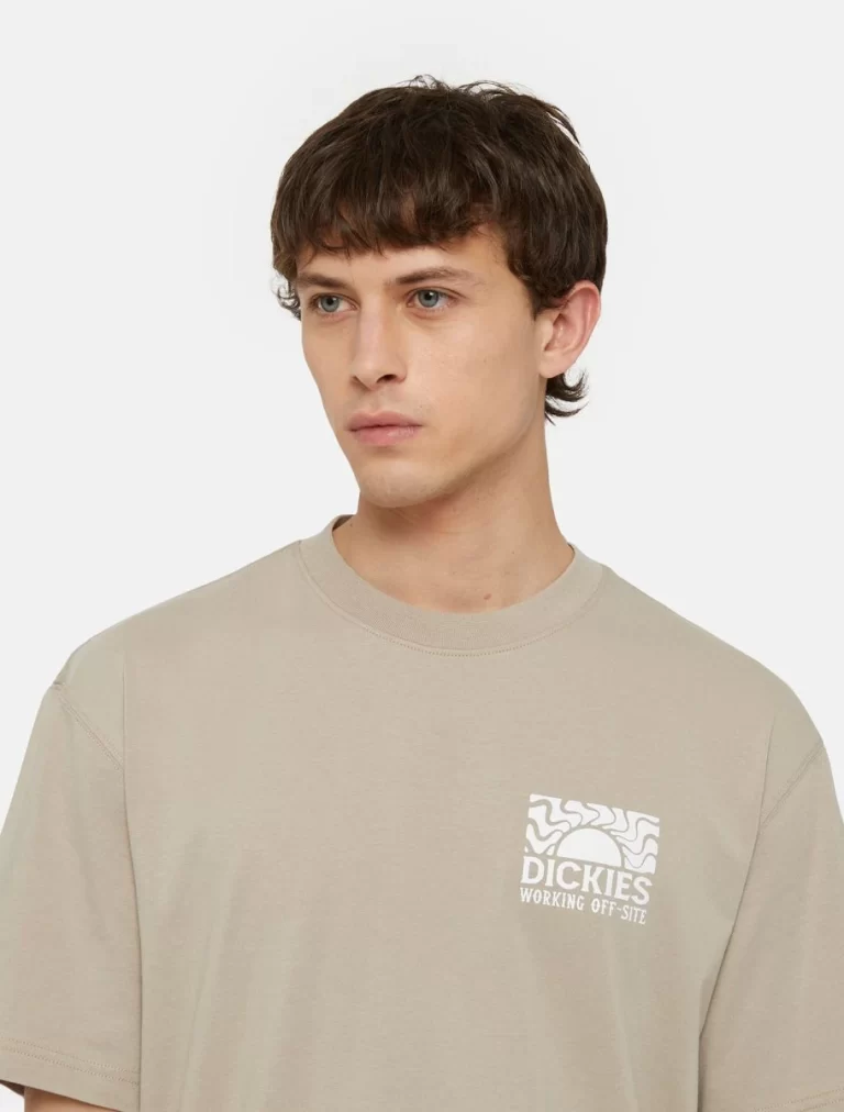 - חולצת טי קלאסית עם צווארון עגול שעשויה מ-100% כותנת ג'רזי וכוללת לוגו קטן של Dickies בחזית והדפסה בגב