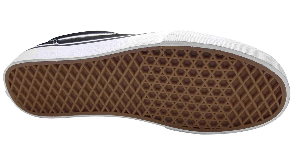 הפלטפורמה משלבת את נעלי הסקייטבורד הקלאסיות של Vans עם פסים צדדיים קלאסיים וחלק עליון חזק מבד בד וזמש.