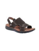 סנדלי עור לגברים עם גפה רחבה מחוררת בחיתוכי לייזר ורצועה אחורית מתכווננת, שמאפשרת להפוך את הסנדל לכפכף. מדרך רך ונוח וסוליה קלת-משקל. הסנדלים מגיעים בשני צבעים לבחירה – שחור וחום.