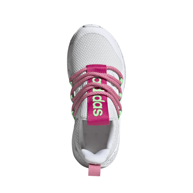 נעלי ה-Lite Racer Adapt 5.0 לילדים מעוצבות בגווני לבן, אפור וורוד, ומיועדות לפעילויות ספורט יומיומיות. הגפה העליונה עשויה רשת מאווררת, המבטיחה אוורור אופטימלי ושמירה על רגליים יבשות. הסוליה החיצונית עשויה EVA, המספקת רכות וקלילות, ומעוצבת לאחיזה מצוינת, כך שהן מספקות יציבות בכל סוגי השטח.