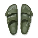 גרסה קלילה במיוחד וגמישה של סנדלי אריזונה הקלאסיים, עשויה מחומר EVA עמיד למים, בצבע זית, אידיאלית לשימוש בחוף הים, בגינה או לאחר אימון.