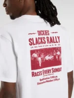 חולצת הטי Slacks Rally היא חולצת טי עם הדפס בגזרה משוחררת ונוחה ומעוצבת עם הרבה השראה וינטג'ית ונותנת כבוד למורשת בגדי העבודה שלנו. עשויה מכותנה חזקה ואיכותית, חולצת טי קצרה זו כוללת את הלוגו האיקוני של Dickies על החזה לצד הדפס גדול בסגנון פוסטר ראלי נוסטלגי בגב.