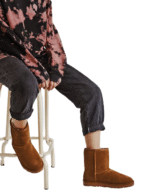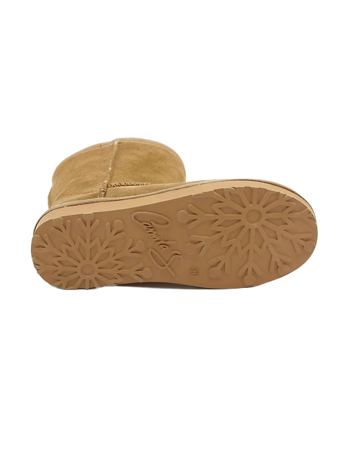 מגפי חורף קלאסיים עשויים זמש עם פרווה פנימית מחממת, תפרים עבים חיצוניים וסוליה קלת-משקל. לא עמידות למים.