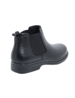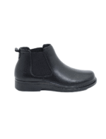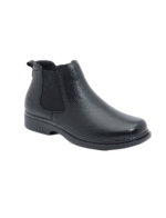 מגפי עור שחורים אלגנטיים לגברים עם שתי רצועות אלסטיות רחבות, משני צדי המגף, לנעילה וחליצה בקלות רבה. חרטום מרובע, בטנה מרופדת, מדרך רך ונוח וסוליה מעט מוגבהת עם מנגנון בלימת זעזועים.